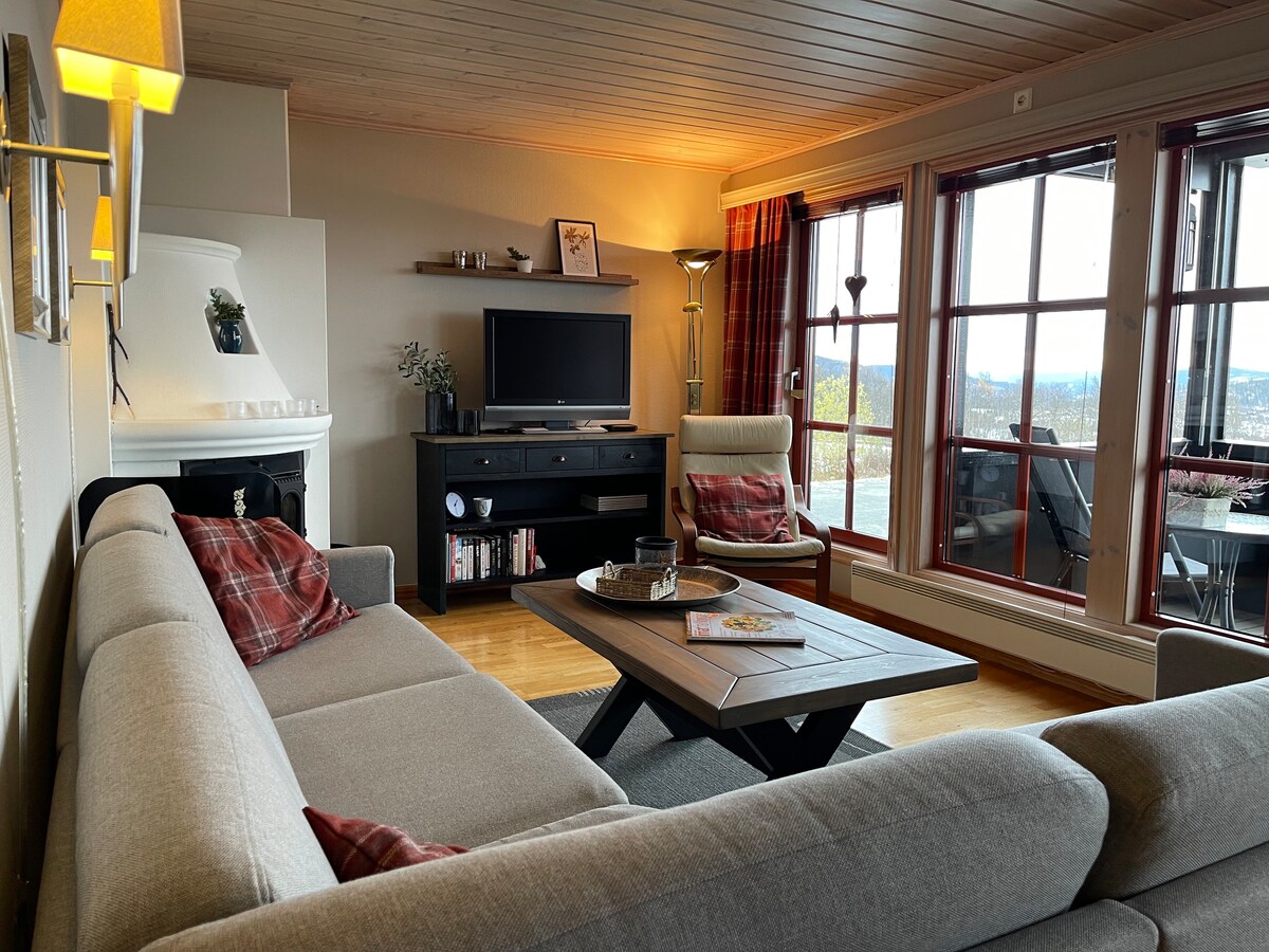 In Beito, 3 km below Beitostølen, we have a great apartment with a panoramic view of Slettefjell. The apartment is delicately furnished, has sunny balconies and is well located with ski slopes and hiking trails nearby. The apartment has 2 bedrooms, a large bathroom with shower/wc and a separate wc. On the main floor there are two balconies, living room with kitchen, WC, and bedroom with bunk beds. Down the stairs is a large bathroom and bedroom with a double bed, as well as a balcony