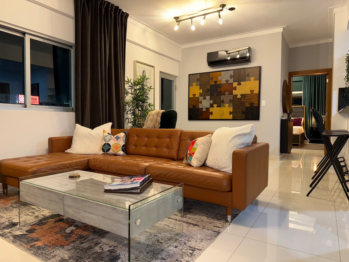 Profitez de cet appartement élégant et moderne situé dans le centre-ville de Saint-Domingue, Piantini, parking privé gratuit, avec une belle vue sur la ville, avec un accès facile aux principaux centres commerciaux, banques, supermarché, restaurant sans avoir besoin d'un véhicule, avec piscine, salle de sport, sauna, tout ce dont vous avez besoin pour vous sentir à l'aise, calme et profiter de quelques jours inoubliables.
