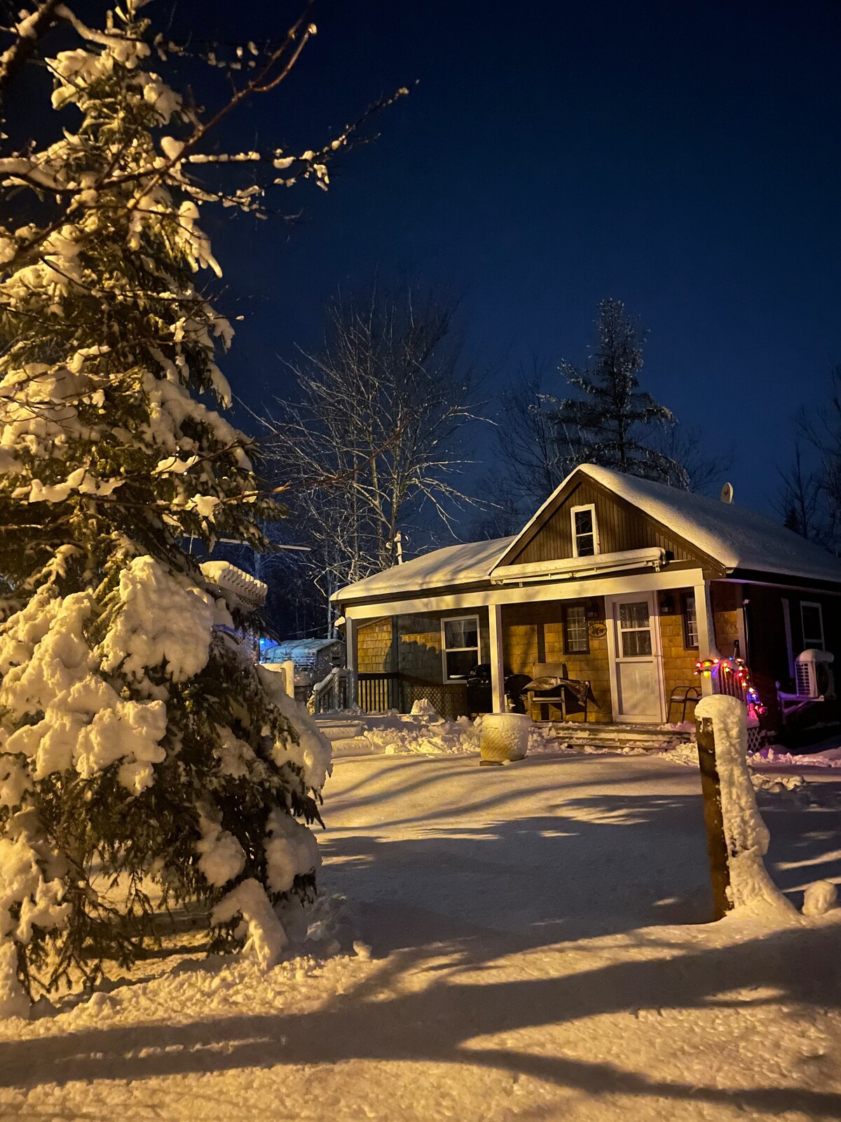 The 2 CC’S Hideaway Cabin on snowmobile trail.