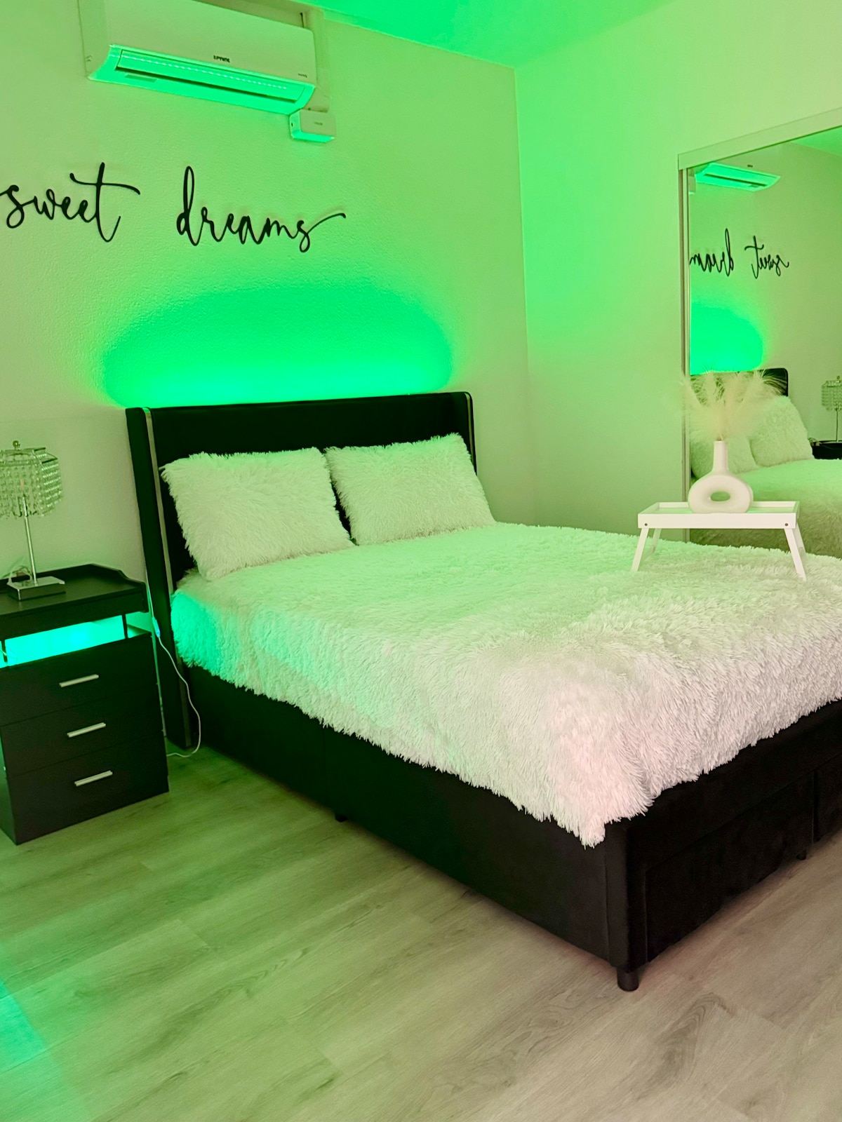 Magnifiquement décoré avec de l'huile peinte à la main, des peintures acryliques. Grande unité de 400 pieds. Nouvelle douche mise à jour 2024, climatisation split que vous pouvez contrôler. Une partie de la cour latérale (comme sur la photo) a été clôturée pour vous. UN animal est autorisé, cela comprend le service ou non le service. Vous devez m'informer si vous apportez un animal. Pas de chats. La suite n'est pas partagée et attenante au reste de la maison. Il y a deux logements locatifs dans ce logement. Chacun de l'autre côté de la maison. C'est l'unité A.