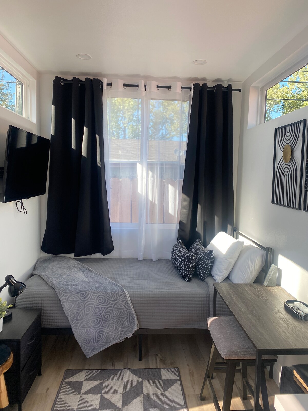 Suite studio « intelligente » nouvellement rénovée. Grand salon extérieur privé avec jacuzzi et douche. À seulement un pâté de maisons de l'accès à la plage et du parc d'État de Benicia. Profitez du charmant centre-ville de Benicia et des restaurants pendant que vous êtes ici. Situé à 30 minutes de Napa ou SF et de la majeure partie de l'East Bay. Idéal pour les célibataires ou les couples, mais vous pouvez dormir à 4 avec le canapé convertible. Apportez vos véhicules électriques, il y a un chargeur sur place ! Grande télévision et système CVC réservé aux suites pour rester à l'intérieur et confortable. Offrez-vous une escapade dès aujourd'hui !