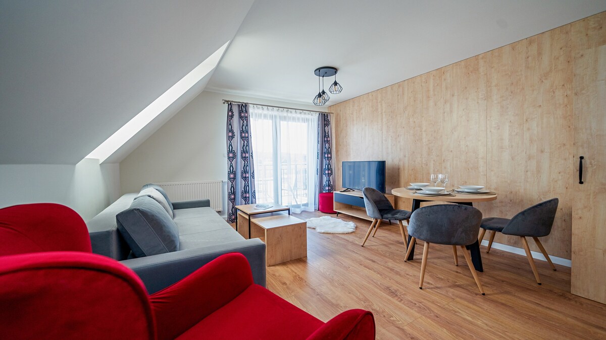 Nous vous invitons cordialement à notre nouvelle perle immobilière - l'appartement unique « SMRECEK », situé près de Zakopane, sur Polana Polanie Pająkówka. L'appartement fait partie d'une nouvelle propriété de montagne avec une vue imprenable sur les Tatras. Il a été aménagé de manière fonctionnelle et moderne - dans la norme PREMIUM. L'APPARTEMENT EST PRESQUE NEUF et récemment loué à nos clients. Tout sent le neuf et la fraîcheur :)