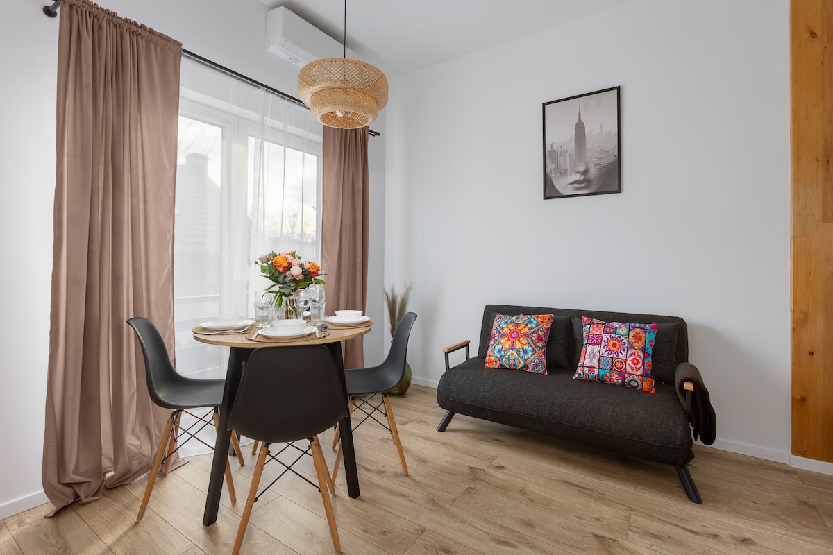 Bel appartement rénové avec terrasse à proximité des montagnes et de l'aéroclub à Bielsko-Biała, où vous trouverez tout ce dont vous avez besoin et où vous vous sentirez chez vous. Cuisine et salle de bain de haut niveau et de qualité. Tous les appareils électroménagers et la vaisselle nécessaires sont disponibles. Idéal pour les affaires, les événements sportifs et les rassemblements culturels sur une courte période. Entièrement meublé avec télévision connectée et Wi-Fi. Les commerces les plus proches (Żabka et Lewiatan) sont à 150 m.