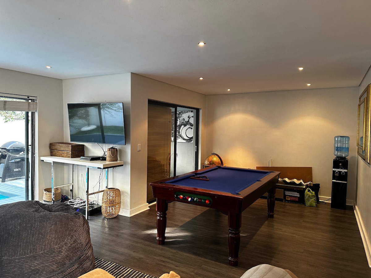 Luxury five-bedroom, five-bathroom Villa in a tranquil setting. This is an ideal secure, spacious home in a small cul-de-sac in Bloubergstrand. The home has a beautiful feel with natural sunlight & high ceilings. Walking distance to the beach as well as to the trendy bars and restaurants close by. Enjoy breathtaking views from every room in the house (except 1 bedroom) Three of the bedrooms have their own private balcony with stunning vistas.