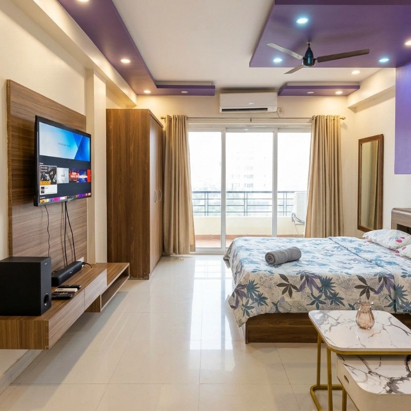 Confortable 1BHK à Newtown • Près de TCS et Ecospace • Aéroport