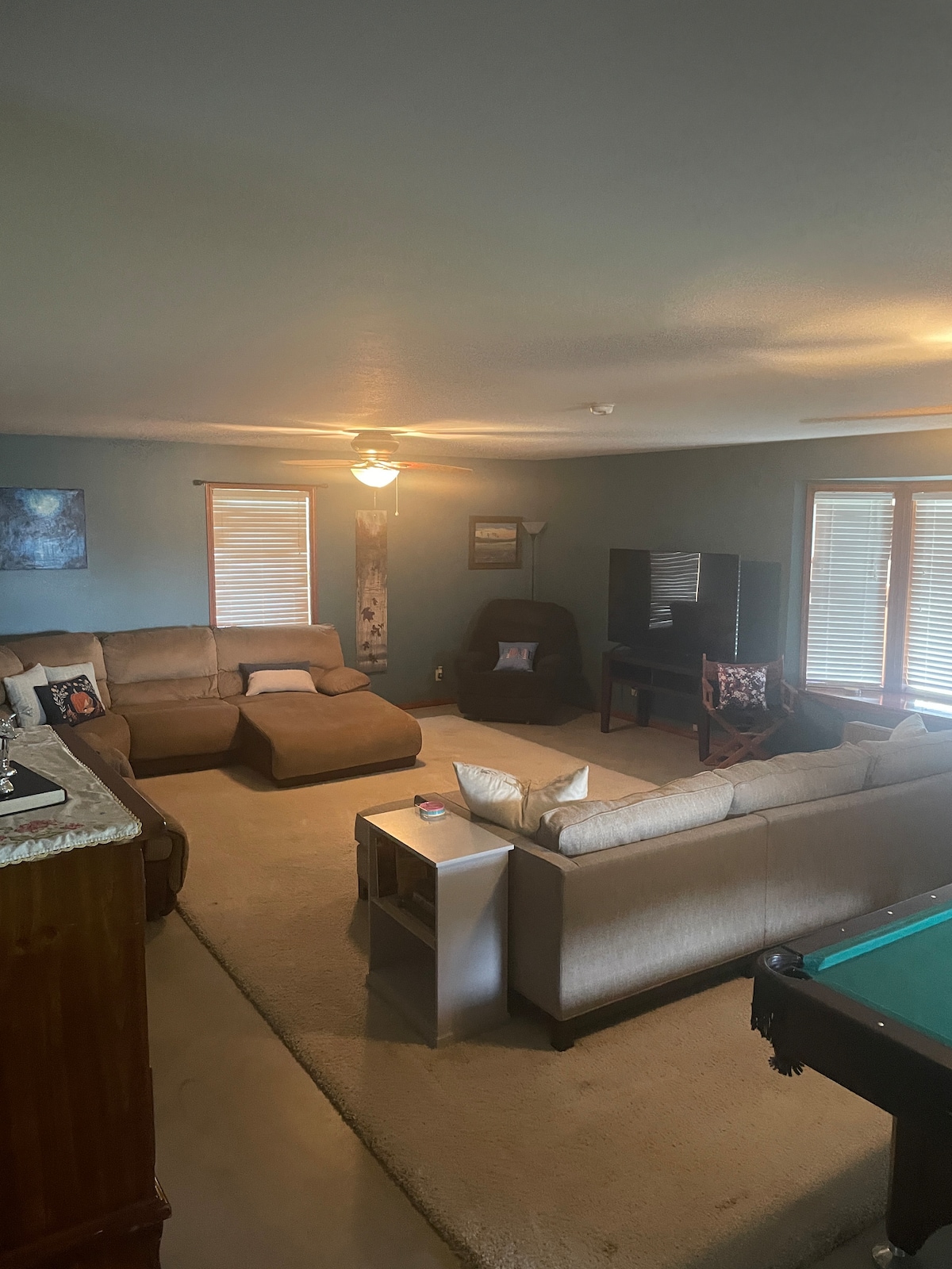 Nous avons des nuits mystérieuses pour nos voyageurs pendant leur séjour. Ce jeu est pour un maximum de 16 personnes. Ceci est facultatif si vous souhaitez passer une nuit de divertissement. Il s'agit de frais supplémentaires de 65 $ US par personne. pour d'autres divertissements, vous trouverez également : Bar privé Spa Lit de bronzage Cuisine équipée Parcours de disc golf une vaste sélection de jeux Une table de poker. La maison occupe tout le pâté de maisons Les animaux de compagnie sont les bienvenus ! Les groupes de 16 personnes ou moins sont bienvenus conformément aux règles Air B&B