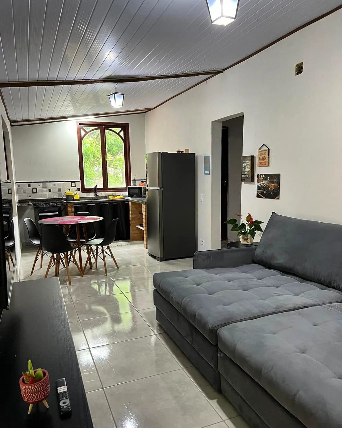 Charmosa casinha rustica situé sur la plage de Perequê, dans une rue à moins de 100 mètres de la plage. La villa dispose d'un garage, d'une piscine partagée, d'un barbecue et beaucoup de nature autour ! Une villa avec 2 chambres dont l'une est une mezzanine avec un lit double. Une chambre avec un lit double avec sortie jardin, une cuisine complète, une salle de bain et un salon avec deux lits simples situés sous la mezzanine. L'espace accepte les animaux de compagnie (1) amenez votre compagnon à quatre pattes 🐾