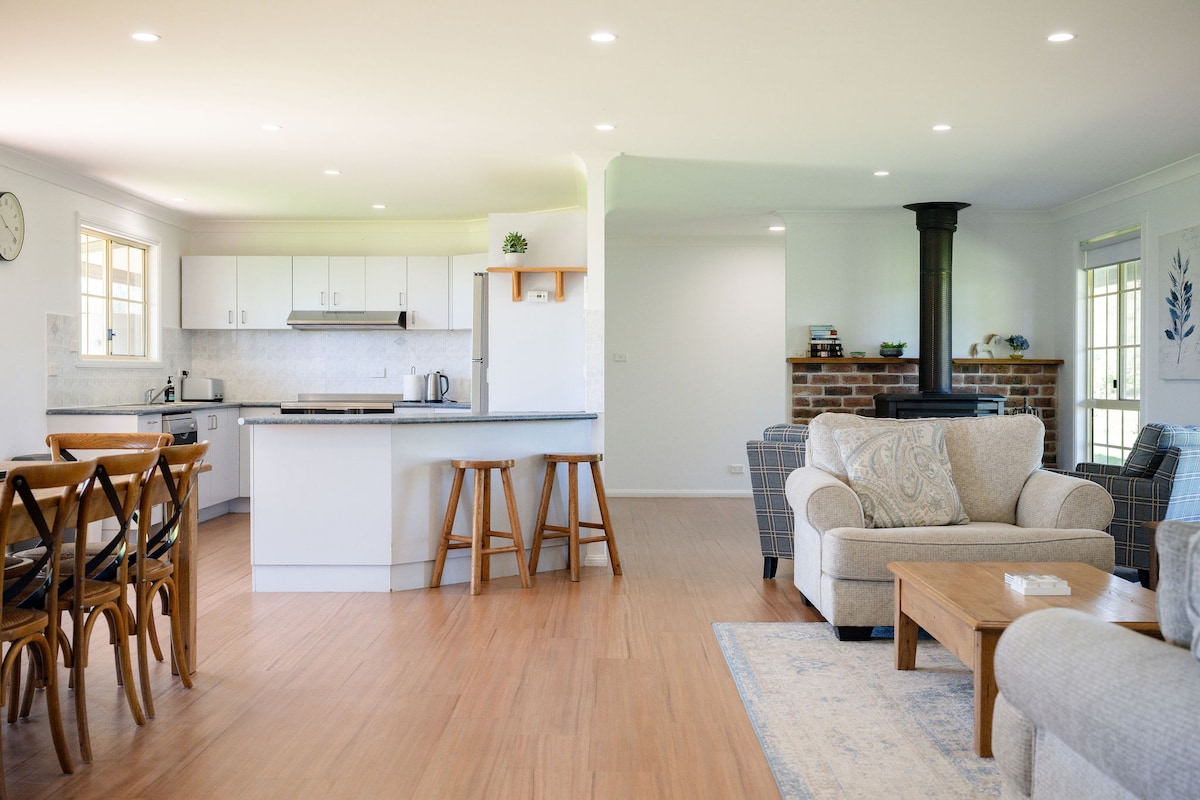 Une charmante demeure de campagne située au milieu du magnifique paysage rural entre Orange et Molong, NSW. Confortablement meublée et dotée d'un feu de bois confortable et de deux chambres queen généreuses. Détendez-vous à l'extérieur dans le luxueux bain extérieur, en dégustant du célèbre vin local. Ou rassemblez-vous autour du feu et profitez de la vue magnifique et du ciel étoilé. À seulement 10 minutes de Molong ou à 20 minutes d'Orange avec des vignobles et des vergers en cours de route. Une escapade tranquille à la campagne avec de l'action et de l'expérience à votre porte.