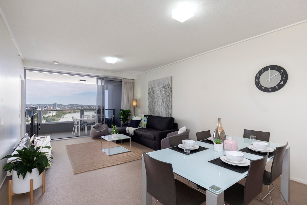 Détendez-vous sur le vaste balcon de ce luxueux appartement de 3 chambres à Brisbane avec une vue extraordinaire sur la rivière. Détendez-vous dans le salon de votre vaste balcon privé avec salle à manger extérieure et barbecue. Retrouvez les e-mails dans le coin bureau avec le WI-FI haut débit. Admirez la vue imprenable sur la rivière depuis Story Bridge jusqu'à la Gabba, en passant par les baies vitrées de la pièce. Idéalement situé pour marcher, faire du ferry ou du covoiturage vers toutes les attractions de Brisbane, avec un parking sur place.