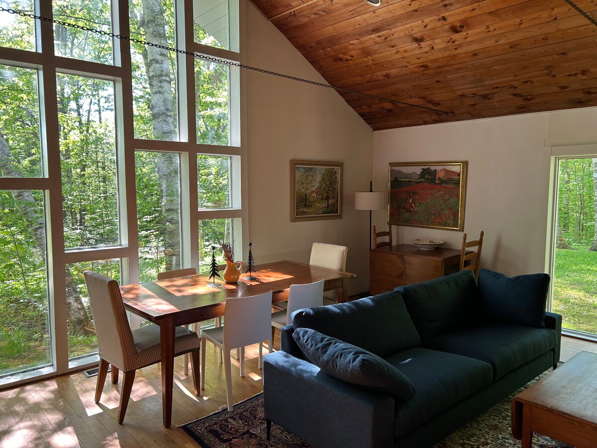 Maison Aframe classique dans un cadre privé, mais juste en bas de la route de la station de ski de Bromley et du centre-ville de Manchester. La chambre principale dispose d'un lit King Size, d'une cheminée et de portes françaises donnant sur la cour arrière. Deuxième chambre avec lit queen size et troisième chambre en mezzanine. Cuisine complète avec vaisselle et ustensiles Crate and Barrel, cafetière et ustensiles de cuisine. Salles de bains modernes rénovées en 2022. Endroit idéal pour venir en famille pour une semaine de vacances. Ski en hiver ou randonnée en été, ou tout simplement pour se détendre toute l'année.
