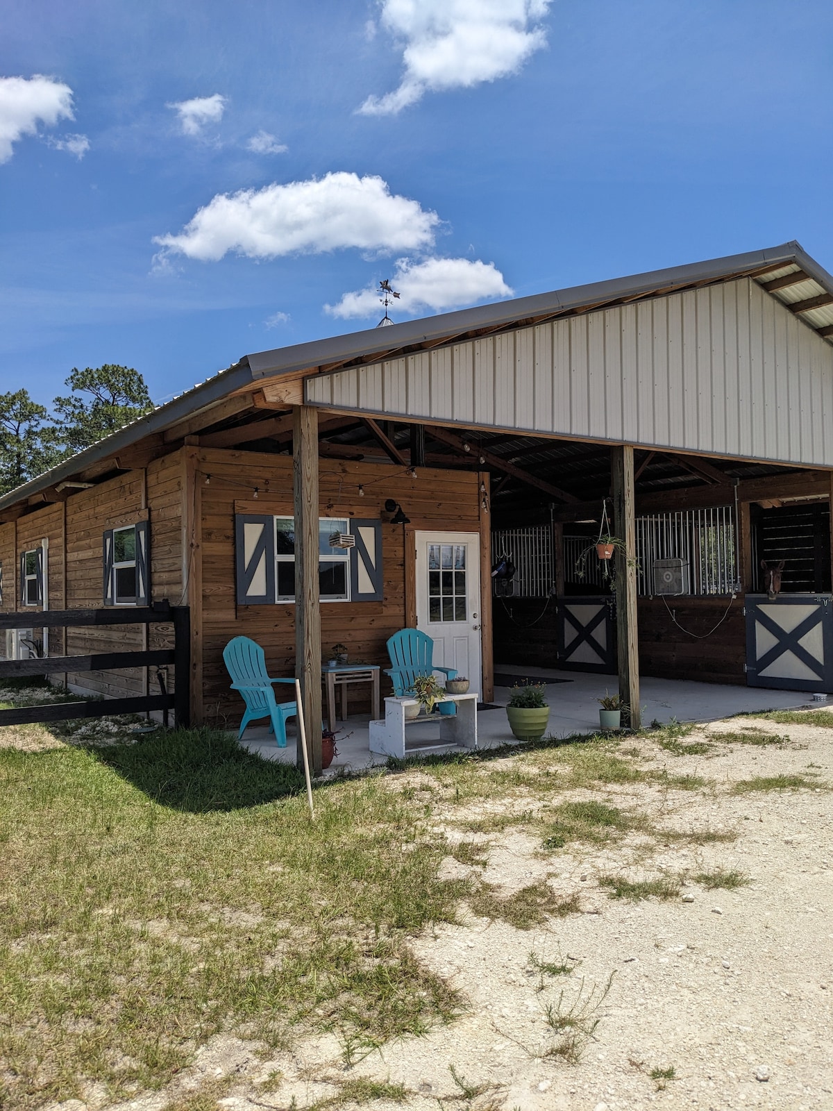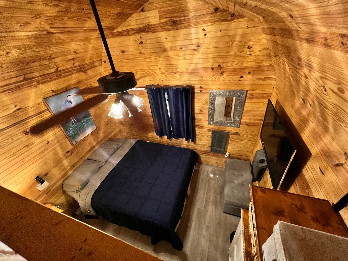 Détendez-vous dans ce chalet confortable et tranquille sur notre petite ferme dans la campagne à l'extérieur de Gainesville, mais à proximité du Santa Fe College, de High Springs et d'Alachua. Le chalet compact dispose d'une cuisine entièrement équipée et d'une baignoire, d'un lit Queen Size, de matelas gonflables jumeaux, de sièges intérieurs et d'un espace pique-nique extérieur. Nous avons quelques alpagas sympathiques, des poules, des chiens et des oiseaux assortis. Animaux de compagnie bien soignés bienvenus, la propriété est entièrement clôturée. Lieu de résidence idéal pour explorer les sources, aller à la recherche d'antiquités ou découvrir la nourriture, la musique et les divertissements de Gainesville.