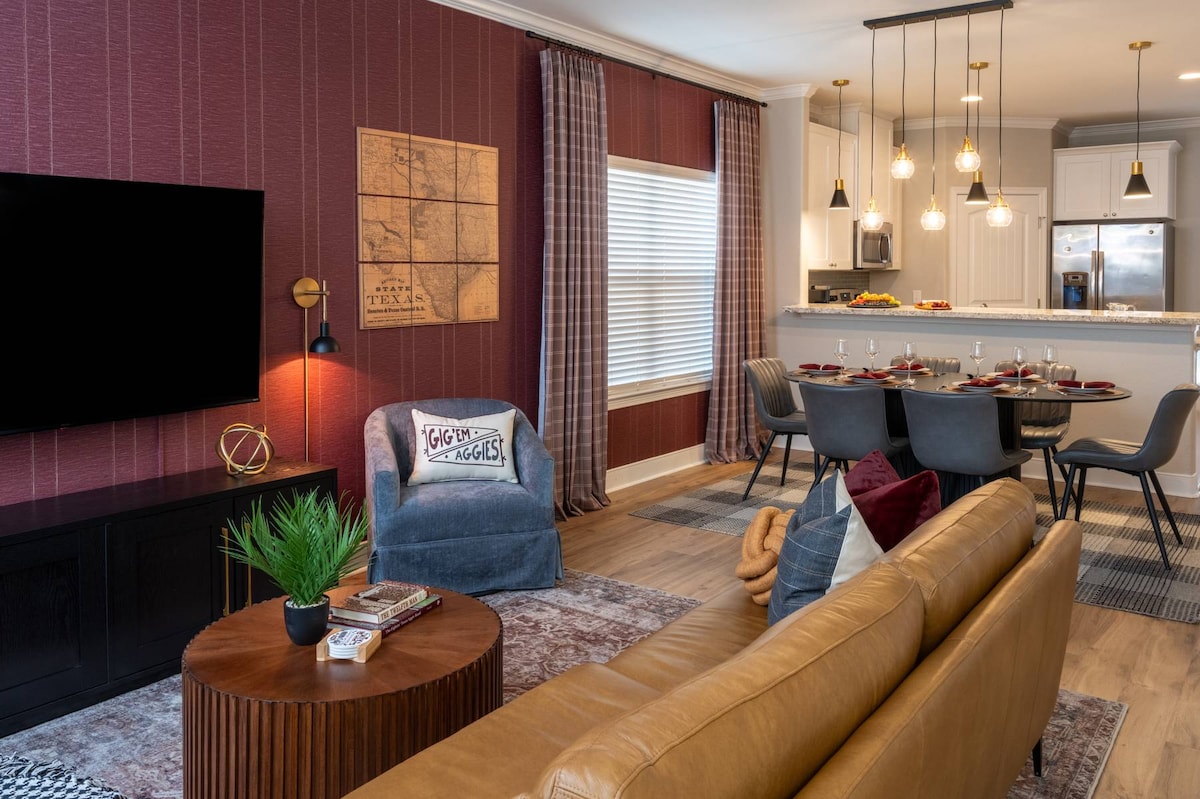 Bienvenue à Ultimate Aggie Retreat ! Parfait pour les journées de jeux, les voyages en famille et les escapades en groupe ! Cette élégante maison moderne du milieu du siècle dispose de 2 salles de séjour, d'une cuisine entièrement équipée et d'un patio extérieur avec un barbecue, idéal pour les rassemblements. À seulement 1 mile de Texas A&M, ainsi qu'à proximité des restaurants et des magasins. Wifi rapide, parking gratuit et chambre pour 16 personnes et plus ! Profitez de beaucoup d'espace pour vous détendre, regarder le grand match ou organiser une réunion. Adapté aux familles et entièrement approvisionné pour votre séjour !