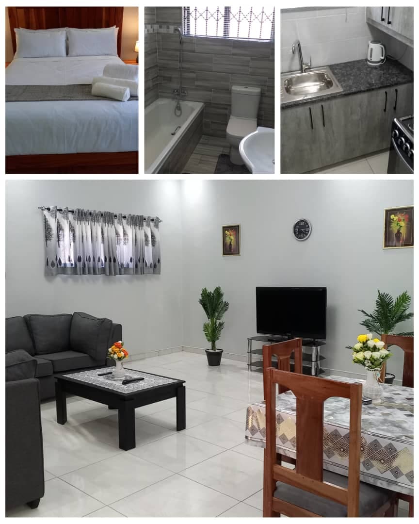 Calme, magnifique exécutif / indépendant, deux chambres avec salle de bain attenante à proximité des supermarchés, de la station-service, de l'hôpital, des pharmacies, d'un hôtel, de restaurants. Parking sécurisé. Wi-Fi gratuit Dstv. Alimentation de secours. Belle vue sur le balcon. Chaque réservation concerne l'ensemble de l'appartement; il n'y a pas de partage avec d'autres voyageurs qui ne font pas partie de votre équipe.