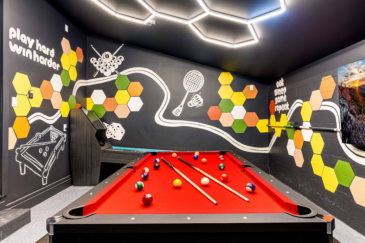 Détendez-vous à Everview, un refuge de ski professionnel, confortable et familial. Ce nouveau logement équipé est parfait pour vous, les familles, les amis ou les couples. Peut accueillir confortablement 10 personnes 🌹 23 minutes - 15 miles jusqu'au pittoresque Biltmore Blooms 🎮 2 salles de jeux : arcade, ping-pong et table de billard 💦 Jacuzzi et sauna en tonneau pour une détente ultime 🔥 Grandes terrasses avec vue panoramique + brasero Cuisine ☕ chargée, bar à café/thé et sirops aromatisés ♿ Rampe, idéal pour les grands-parents et les poussettes ⚡️~1 000 Mbit/s, travaillez plus vite 😌