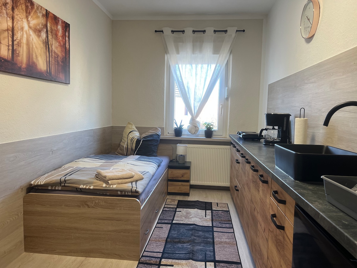 -Das Inserat bezieht sich auf 1x Apartment für 1-2Personen -Insgesamt 8 Apartments in sehr ruhiger Lage -WLAN kostenfrei -SAT-TV -angebunden an den "ZEN-Tempel Wolkentor" -weitere Angebote buchbar (Seminare, Coaching, Auszeit) -grosses Gartengelände -komplette Apartment-Küche -Sauna mit finnischer Sauna, Infrarotkabine, Regendusche und kleinem Ruheraum (private Reservierung für 2Personen bis 3h, inkl. Tücher) gegen Aufpreis von 49€ buchbar -Endreinigung inklusive