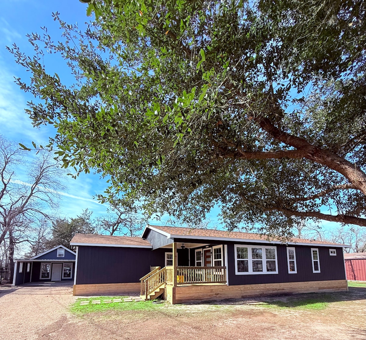 Il s'agit d'une maison de campagne unique de 5 chambres, située sur 24 acres, parfaite pour votre visite à College Station. Cette propriété offre amplement d'espace pour que vous et vos invités puissiez vous détendre et vous ressourcer. Que vous soyez ici pour un match de football Aggie (à 15 minutes de Kyle Field), un tournoi sportif, un mariage (à côté de Peach Creek Ranch) ou autre chose, cette maison offre un emplacement pratique, de l'intimité, un cadre de campagne magnifique et des espaces pour que les gens puissent se rassembler et se séparer.