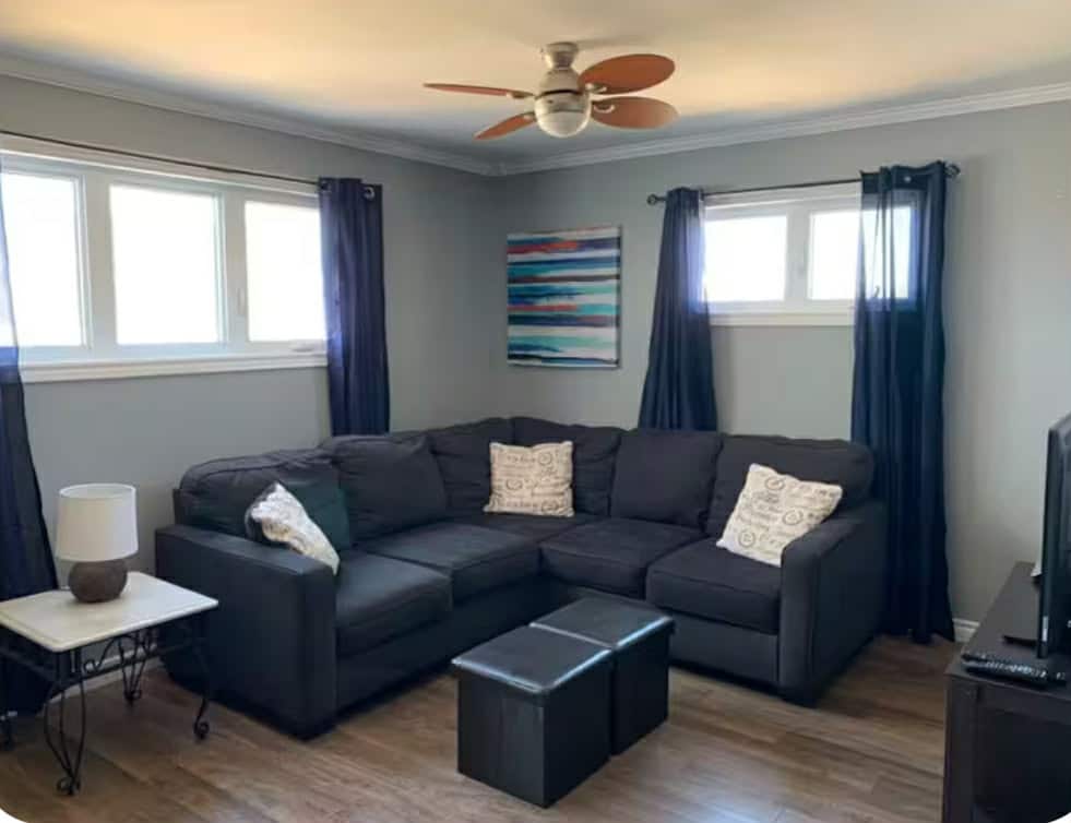 Bienvenue à Caribou Cove ! Situé au centre-ville et à quelques minutes du terminal du traversier Marine Atlantic. Cet espace offre toutes les commodités de la maison ainsi qu'une vue imprenable sur l'océan. Vous êtes en mesure de voir l'arrivée du ferry et de quitter les fenêtres de la chambre à coucher. Wifi, télévision par câble, cuisine complète et buanderie en suite sont disponibles pour votre commodité. Une chambre dispose de deux lits jumeaux et l'autre d'un lit queen, tous deux avec une literie confortable et des matelas. Reviens à la maison et reste à Caribou Cove aujourd'hui !