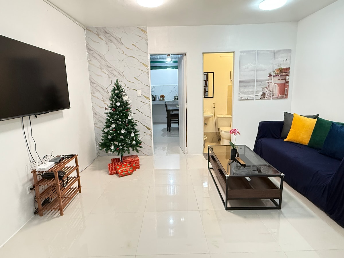 Amenez toute la famille dans cet endroit génial avec beaucoup d'espace pour le plaisir. Nouveau, élégant et spacieux. L'appartement peut accueillir confortablement jusqu'à 7 personnes. Avec les 2 personnes séjournant dans le salon. Nous sommes situés à proximité du SM et du centre commercial Gaisano. Les chambres (2) sont équipées de la climatisation de l'onduleur. Le salon dispose également d'un onduleur climatisé. Doté d'équipements de cuisine tels que cuiseur à riz, plaques à induction, grillades, bouilloire et réfrigérateur. Profitez-en !