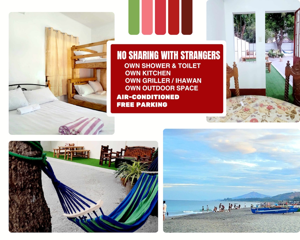 📍2 minutes à pied de San Felipe, Zambales Beach 📍À seulement un kilomètre de la célèbre plage de Liwliwa ◆ Logement climatisé ◆ PAS DE PARTAGE AVEC D'AUTRES GROUPES ! - Toilettes et douche privées - Cuisine privée (entièrement équipée) - Propre gril - Espace extérieur privé ◆Parking GRATUIT sur place --------------------- Bienvenue dans les cabanes côtières d'Ugalde - Unit A ! EMPLACEMENT : 15 °03'39.6"N 120 °03'40.9"E (Copiez et collez-le dans Google Maps.)