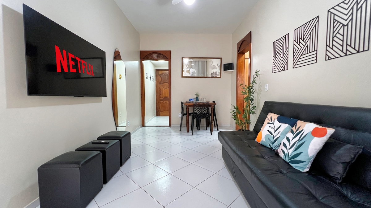Appartement spacieux, chambre et salon avec climatisation et très ventilé dans le charmant quartier de Passagem. Espace confortable, avec cuisine équipée, zone de service et garage pour passer la nuit. Nous fournissons le linge de lit et de bain. Quartier calme et historique. ✅ À 3 min du pôle gastronomique. ✅ À 4 minutes de Praia da Passagem. ✅ À 4 min du bateau-taxi pour Ilha do Japonês (200 m). ✅ À 5 minutes de l'église São Benedito et du Largo São Benedito. À ✅ 15/20 minutes de Praia do Forte. ✅ À 20 minutes du centre-ville de Cabo Frio. TOUS À PIED !