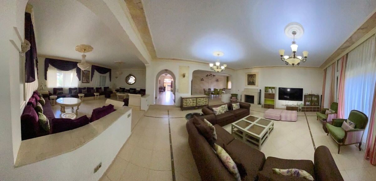 Villa de luxe avec grande piscine privée auto-nettoyante à 5 km de Cabo Negro et à 3 km de l'aéroport de Tétouan et de McDonald's. Avec 2 chambres et 2 salons (un avec 4 canapés-lits) pour 8 adultes, cuisine équipée, salle de bain moderne, jardin avec éclairage qui s'allume au coucher du soleil, espace barbecue et parking pour 3 véhicules. Ménage et entretien garantis. Les fêtes ne sont pas autorisées, seuls les clients respectueux sont admis. Comprend la climatisation automatique
