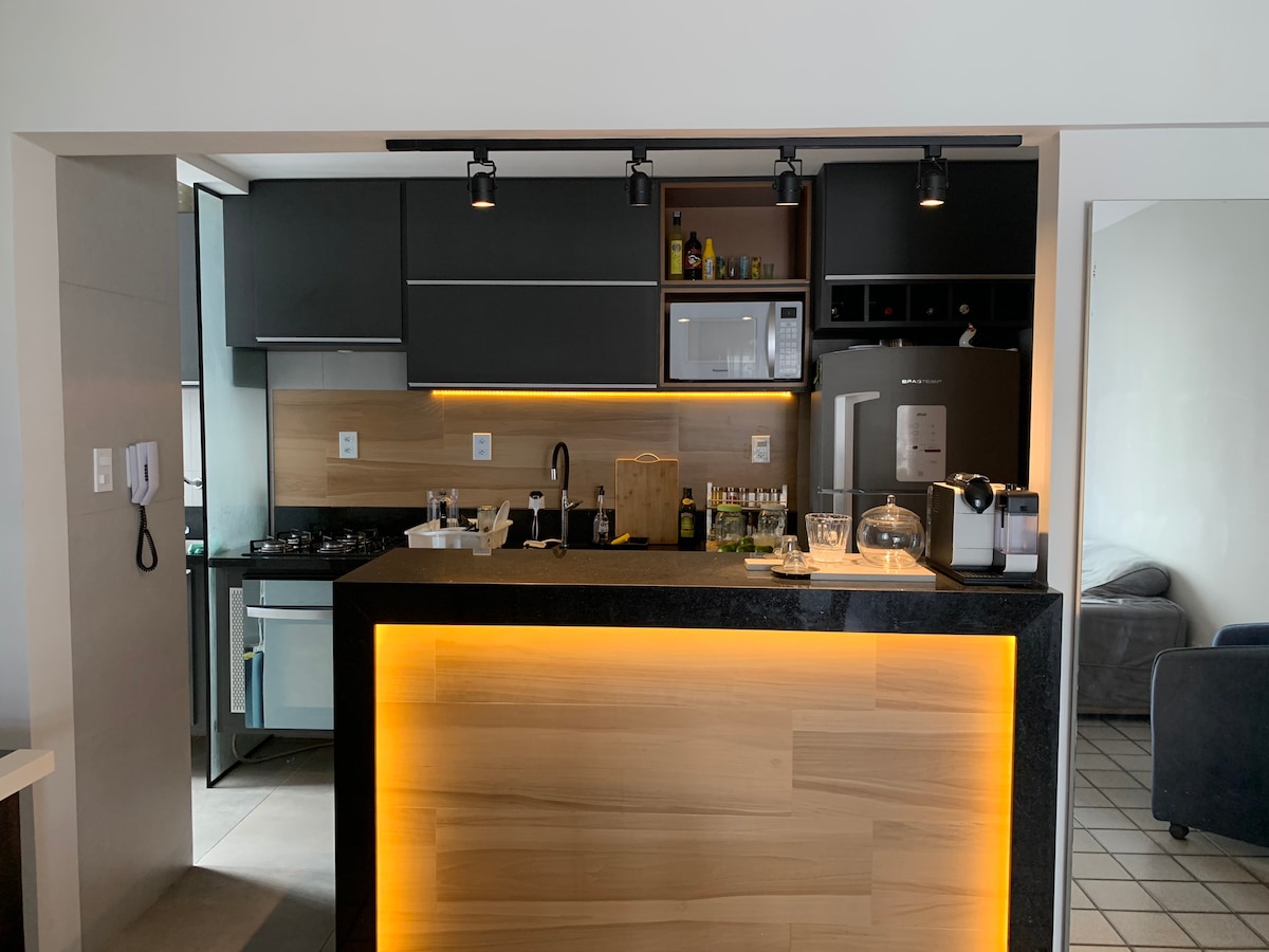 Quarto e sala mobiliados com toalhas e roupa de cama, cozinha americana com todos os utensílios, recepção e portaria 24hs, 2 smart tv com Netflix, , internet vivo banda larga 300mb individual, ar condicionado Split 12.000 BTUs no quarto e sala 9.000 btus , camareira e governança. obs: os serviços de camareira, consiste: limpeza geral do apartamento , lavar a louca e banheiro, arrumação da cama e tirar o lixo. horário das camareiras: segunda a sexta 09:00 as 15:30 sábado 09:00 as 12:00