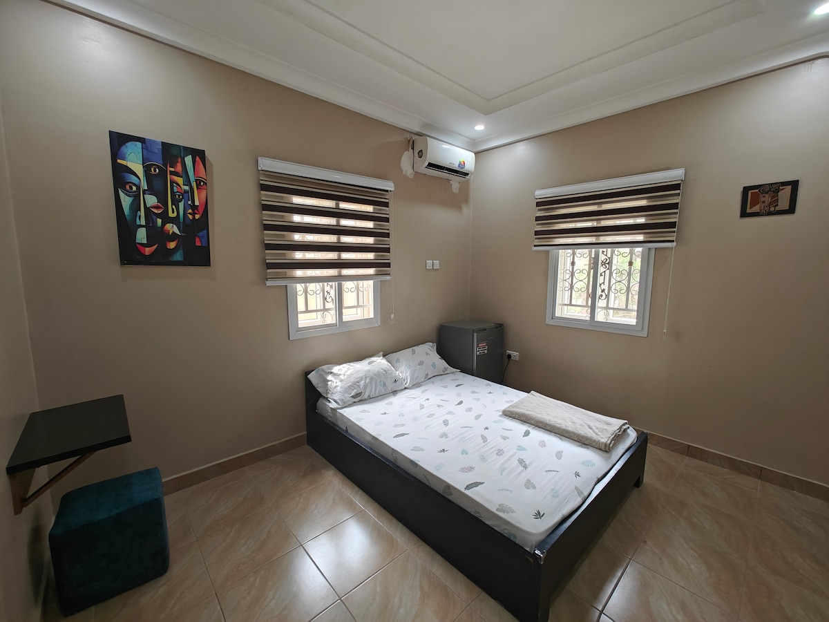 Appartement entier d'une chambre pour vous seul dans un appartement avec des équipements haut de gamme : - Proximité du centre-ville d'Abuja - À côté de Gwarinpa - Sécurité 24 h/24, 7 j/7 - Gardes uniformes et présence policière pour la tranquillité d'esprit - Électricité 24h/24 (maison avec onduleur solaire) - Studio entier avec climatisation - Télévision par satellite - Cuisine entièrement équipée - Salle de bains privée - Complexe privé - Avantages du domaine - Centre commercial, agréable pour les promenades Réservez dès maintenant pour un séjour inoubliable et sans tracas à Abuja
