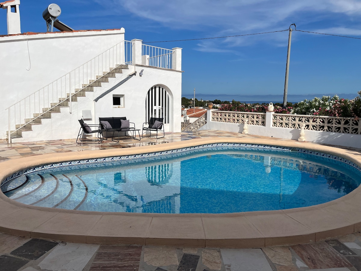 Jolie villa espagnole avec piscine, Penon et vue sur la mer, wifi