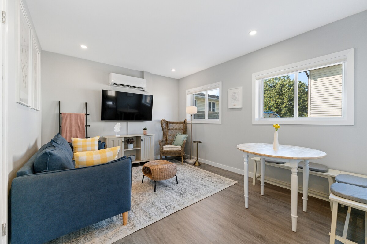 Cet hiver, évadez-vous dans un cocon douillet❄️ Blottissez-vous dans cette retraite hivernale chaleureuse et accueillante, où les flocons de neige passent devant les fenêtres et où le monde extérieur semble calme et tranquille. Passez des matinées glaciales avec un café chaud sur le porche chauffé, des après-midi confortables recroquevillé avec un bon livre et des soirées paisibles à regarder la neige tomber. Parfait pour les week-ends, les séjours-travail ou une escapade sereine avant l'agitation des fêtes. À quelques pas du sentier du canal de Welland !