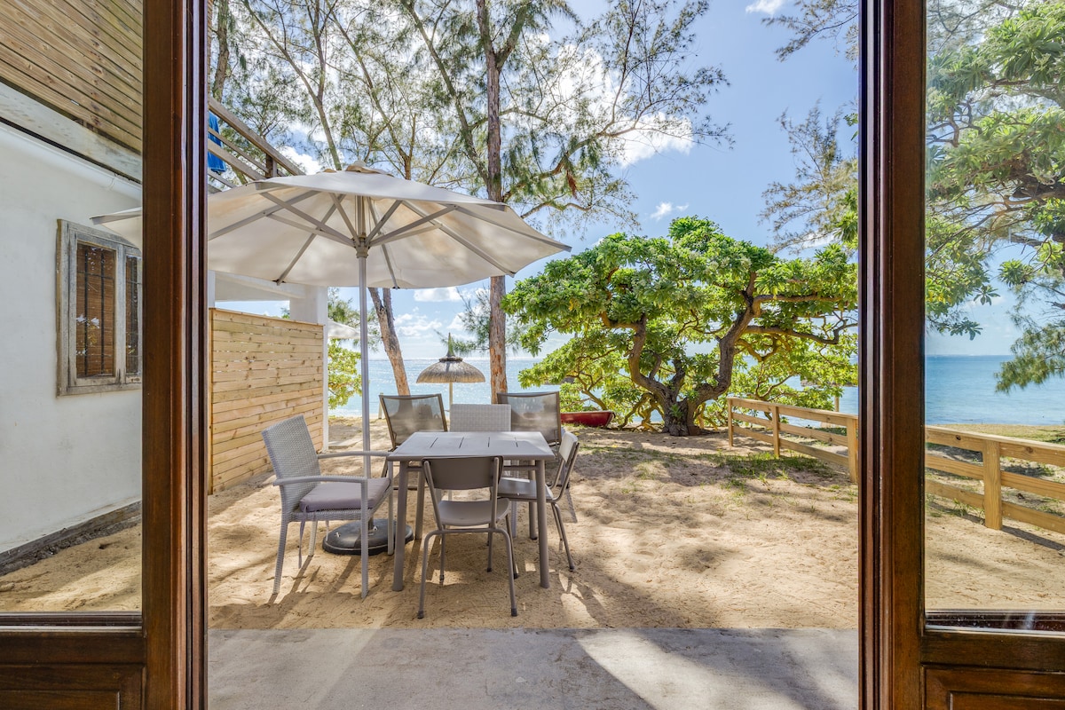 Le studio est situé directement sur la superbe plage de Trou d'Eau Douce, directement face au lagon turquoise. Ce n'est pas un studio de luxe, c'est un espace de plage authentique et charmant où vous vous sentez connecté à la belle nature de la côte est de l'île Maurice. Il est idéal pour un couple et comprend un lit double, une kitchenette, un dressing et une salle de bain. Sa grande porte vitrée avant vous offre une vue directe et un accès au lagon.