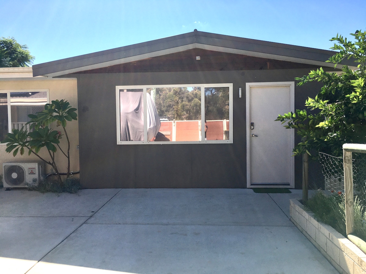 Profitez d'être à seulement 4 minutes à pied du centre du meilleur restaurant de Perth. Idéalement situé, il se trouve à 10 minutes en bus du centre-ville. En voiture, il faut environ 10 minutes pour se rendre à Curtin Uni ou au stade Optus, 20 minutes pour se rendre à l'aéroport de Perth, 25 minutes pour se rendre à Cottesloe Beach ou aux chutes de Lesmurdie. Vous reconnaîtrez la maison près du jardin indigène inspiré des sentiers de randonnée locaux. Les voyageurs ont une entrée privée et un accès exclusif à une chambre principale, une salle de bain et un salon/une deuxième chambre (pas de cuisine).