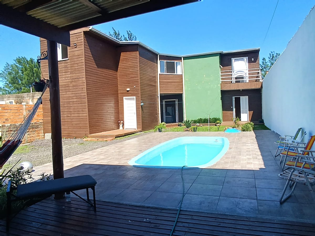 Cabana aconchegante com piscina e suite, acomoda muito bem oito pessoas. Duas quadras do mar, supermercado e farmácia. Duas quadras do mar. Suíte - cama de casal. Quarto - cama de casal + beliche. Mezanino - cama de casal. Banheiro social com box. Cozinha americana equipada com toda comodidade para fazer todas refeições integrada a sala de estar para melhor convivência entre todos hóspedes. Área de churrasqueira com mesa de jantar. Pátio com piscina. Espaço para guardar dois carros.