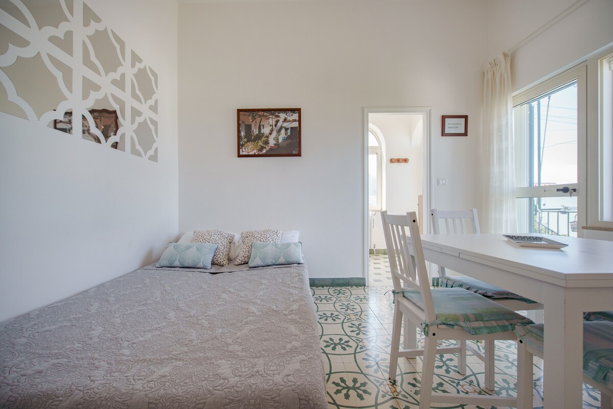 Studio avec vue sur la mer moderne finement rénové, situé dans le village de pêcheurs à deux pas du port et de la station de funiculaire dans la localité de Marina Grande. Situé au deuxième étage d’un bâtiment historique, il vous permet de rejoindre à pied en quelques minutes les restaurants, les bars, les épiceries et la plage. Composé d’une grande et lumineuse chambre en maçonnerie, d’une kitchenette, d’une mezzanine avec matelas au sol pour le 3ème client et d’une salle de bain. Équipé de wi-fi, smart TV et climatisation.