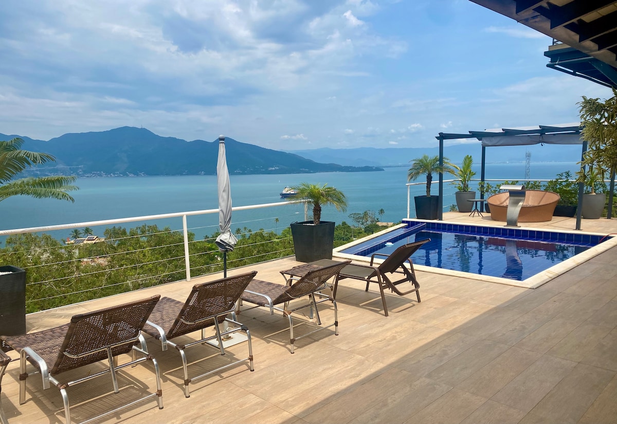 Maison exclusive en bord de mer à côté du phare de Ponta Grossa à Ubatuba. Peut accueillir jusqu'à 14 personnes avec 4 suites, toutes avec une vue imprenable sur la mer. Accès privé à la jetée avec entrée directe à la mer pour la baignade, piscine chauffée, salon barbecue, ping-pong, espaces de vie spacieux et cuisine entièrement équipée avec congélateur et friteuse à air. Situé sur la route des baleines à bosse avec des observations fréquentes. Animaux acceptés !