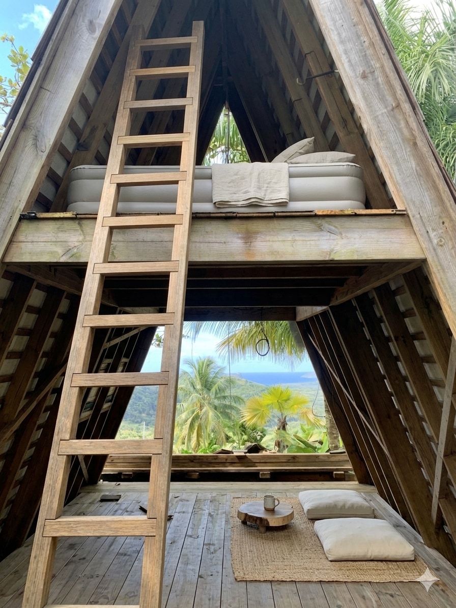 Plongez au cœur de la nature avec ce concept de vie en plein air sur les hauteurs ventilées. Ce refuge privé se compose d'un cocon A-Frame en bois pour la nuit et d'un vaste préau couvert avec salon et cuisine. Entre douche extérieure et toilettes sèches, vivez une expérience éco-responsable au pied de la forêt. Ici, l’air est pur et l’ambiance est celle d’une campagne authentique, rythmée par le chant du coq. Le lieu idéal pour les amoureux de randonnée et de sérénité.