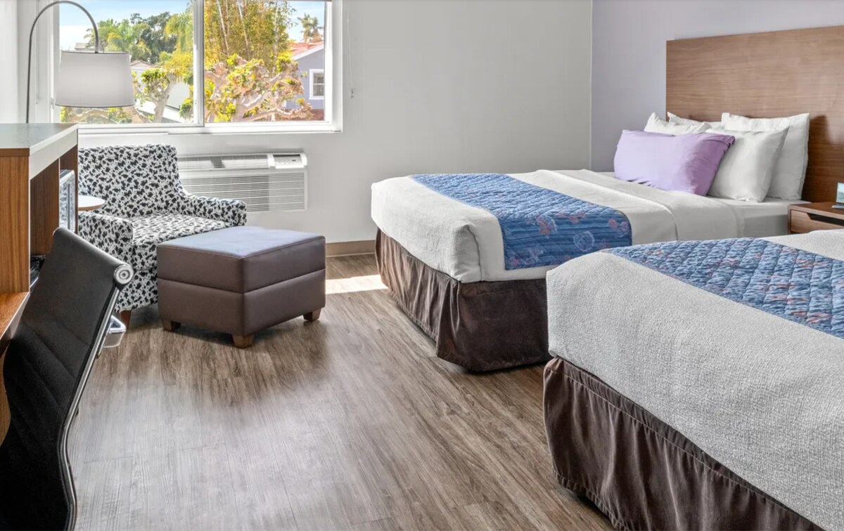 Profitez du confort de style boutique dans nos chambres et suites d'hôtel de Carlsbad, soigneusement conçues pour votre escapade en Californie du Sud. Chaque espace accueillant dispose d'une décoration contemporaine, d'un ou deux lits king size avec matelas à plateau-coussin moelleux, et d'agencements spacieux pour la détente. Des équipements modernes, comme un réfrigérateur, une télévision HD et une connexion wifi gratuite, garantissent un séjour sans accroc. Découvrez votre retraite parfaite à Carlsbad : élégante, confortable et prête à vous accueillir.