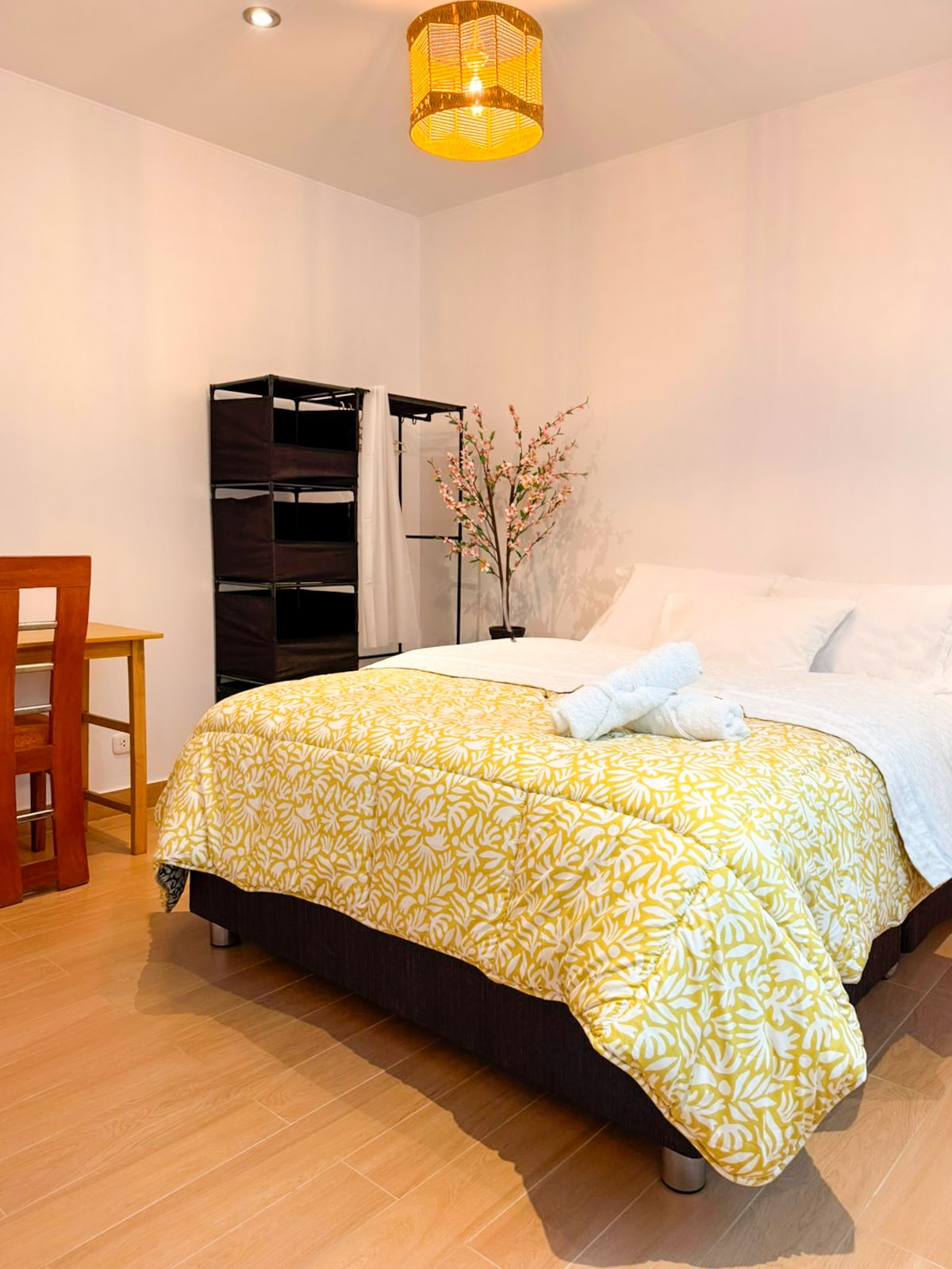 Mini-appartement accessible de type studio avec un lit confortable, cuisine/salle à manger privée, salle de bain privée avec eau chaude et espace de travail. Le studio est éclairé et ventilé, il dispose d'un accès direct à la rue et au quatrième étage il y a des patios terrasse pour se reposer, lire, bronzer ou regarder les étoiles. C'est un espace intime pour une ou deux personnes avec toutes les commodités. Vous pouvez vous garer à l'extérieur du logement (c'est une rue calme). En tant qu'hôtes, nous serons toujours attentifs à votre séjour chez nous
