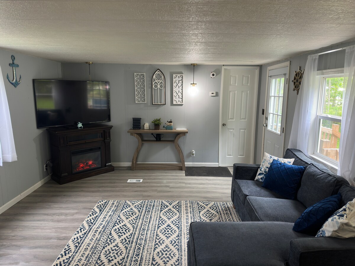 À quelques pas de l'eau (2 min, PAS au bord du lac, rue latérale). Crystal Lake est à 5,3 miles. Il y a un site d'accès où vous pouvez ancrer un bateau pour la journée (ancre, pas de quai ni de terrain, mais vous pouvez ancrer dans l'eau et revenir au chalet), la plage est à 800 mètres, et le chemin de course est à 1 mile. Le grand terrain double accueille parfois des voyageurs dans un camping-car sur le 2e terrain et un foyer partagé. Les voiturettes de golf sont autorisées. Une pièce d'identité avec photo et un numéro de téléphone valides seront exigés immédiatement après la réservation.