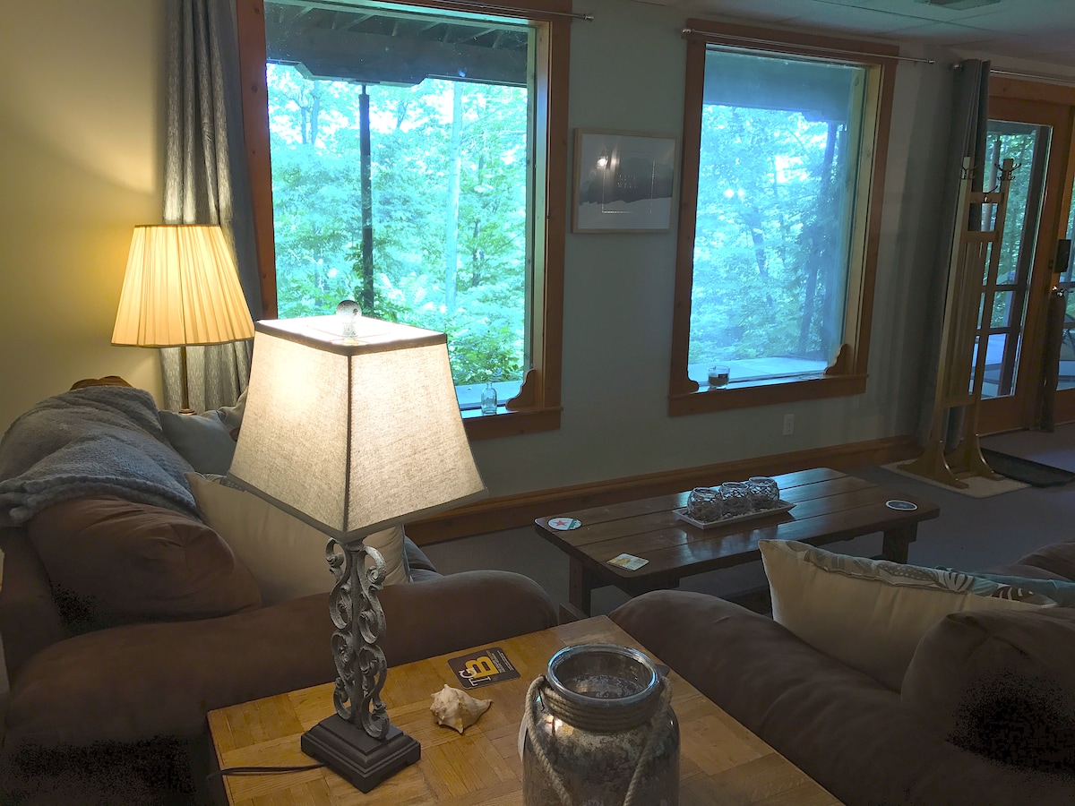 Vous vous sentirez comme chez vous avec un séjour dans un chalet rénové qui allie l'ambiance traditionnelle d'un chalet familial à une base moderne et épurée. Situé sur la rive nord du lac Bass de 100 acres pour tous les sports. Le chalet peut être apprécié tout au long de toutes les saisons du Michigan. À l'approche de l'automne, notez que le terrain de chasse de l'État n'est qu'à 100 mètres à pied. L'intérieur est un mélange de confort rustique et de touches modernes. Il s'agit d'une maison et non d'un hôtel, vous trouverez donc des bizarreries qui appartiennent à toute maison individuelle.