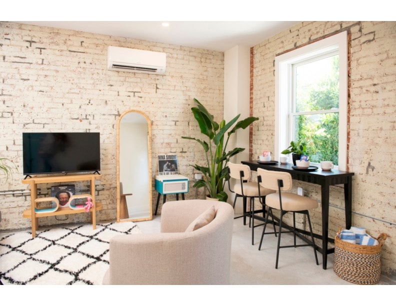 Entrée privée de la suite qui ne partagera aucun espace avec personne. 2 places de stationnement gratuites. Suite privée ensoleillée avec canapé-lit et lit Queen Size, cheminée, salle de bain rénovée et salon. Pas de chaînes locales, la télévision fonctionne avec votre téléphone connecté et les chaînes Hulu et Disney+ gratuites. Cuisine, a des serviettes et des casseroles comme ustensiles de cuisine. Ne dérangera pas l'entreprise. Calme et parfait pour les couples !