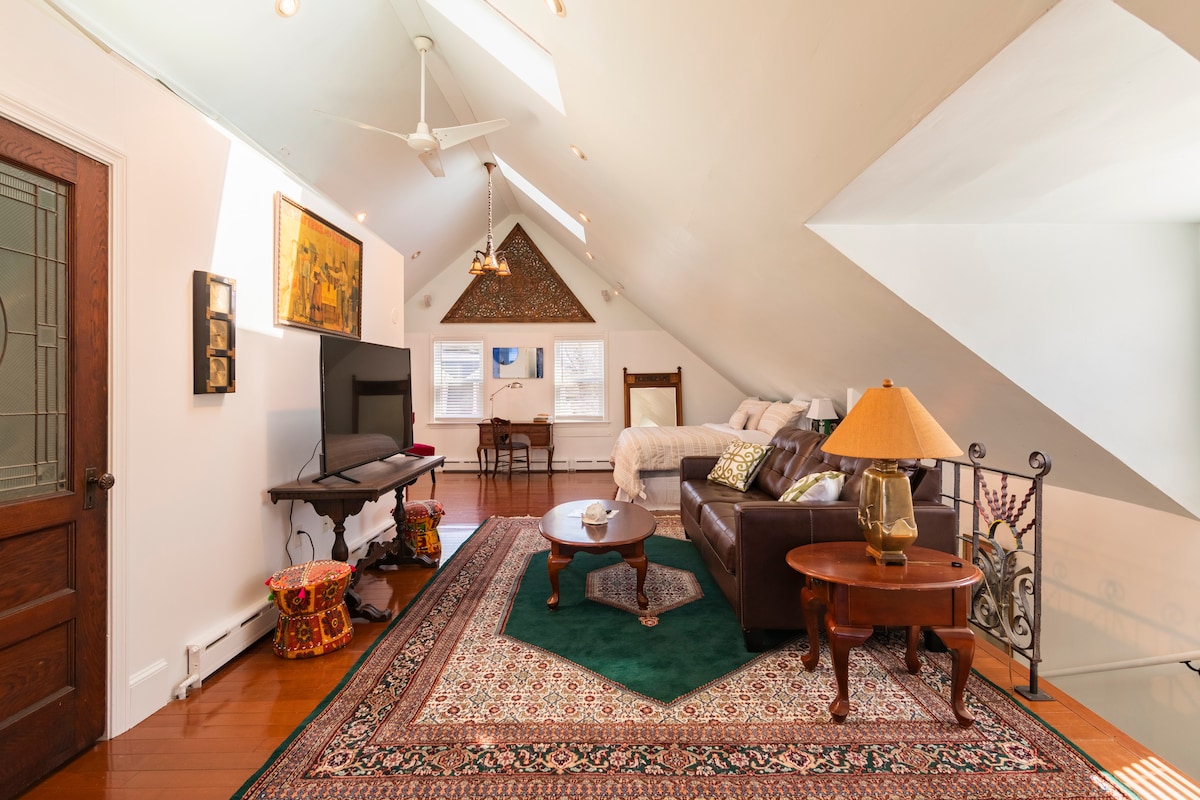 Attaché à une maison familiale mais avec son propre espace privé — y compris une entrée privée, une place de parking dédiée, une petite terrasse et une pelouse avec des sièges — ce studio ensoleillé est dans le cœur piétonnier de Wakefield, près de l'URI, des plages, de Newport, de la piste cyclable. Lit Queen Size ; canapé-lit Queen Size ; convient mieux à 2 adultes (le canapé-lit convient mieux aux enfants). Réfrigérateur, micro-ondes, cafetière, gril (pas de four). Adapté aux allergies : produits de lessive Free & Clear ; pas d'animaux de compagnie. Arrivée autonome. Réduction automatique pour les séjours longue durée.