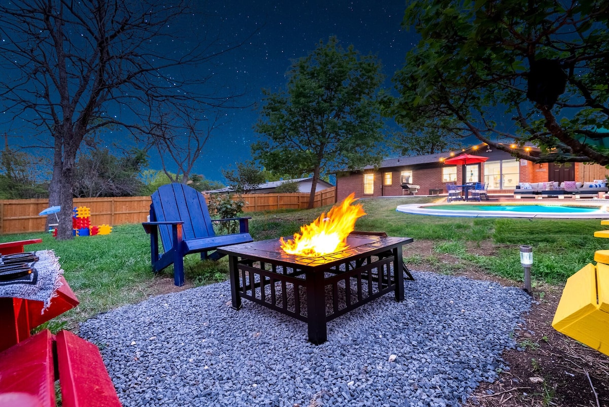Vous cherchez l'escapade parfaite située à l'endroit idéal ? Notre belle maison est juste à côté de l'aéroport et très proche du centre-ville, de Six Flags et d'autres attractions ! Équipée pour accueillir les familles avec de jeunes enfants ou simplement des amis à la recherche d'une escapade amusante. Profitez de la belle piscine fermée, du feu sans fumée, des jeux, des espaces de détente extérieurs et plus encore. La maison est équipée de luxueux matelas taille King et Queen Nectar, de grandes télévisions Roku, de jeux extérieurs, d'une chaise haute, d'un lit pliant, d'ustensiles pour enfants, etc.