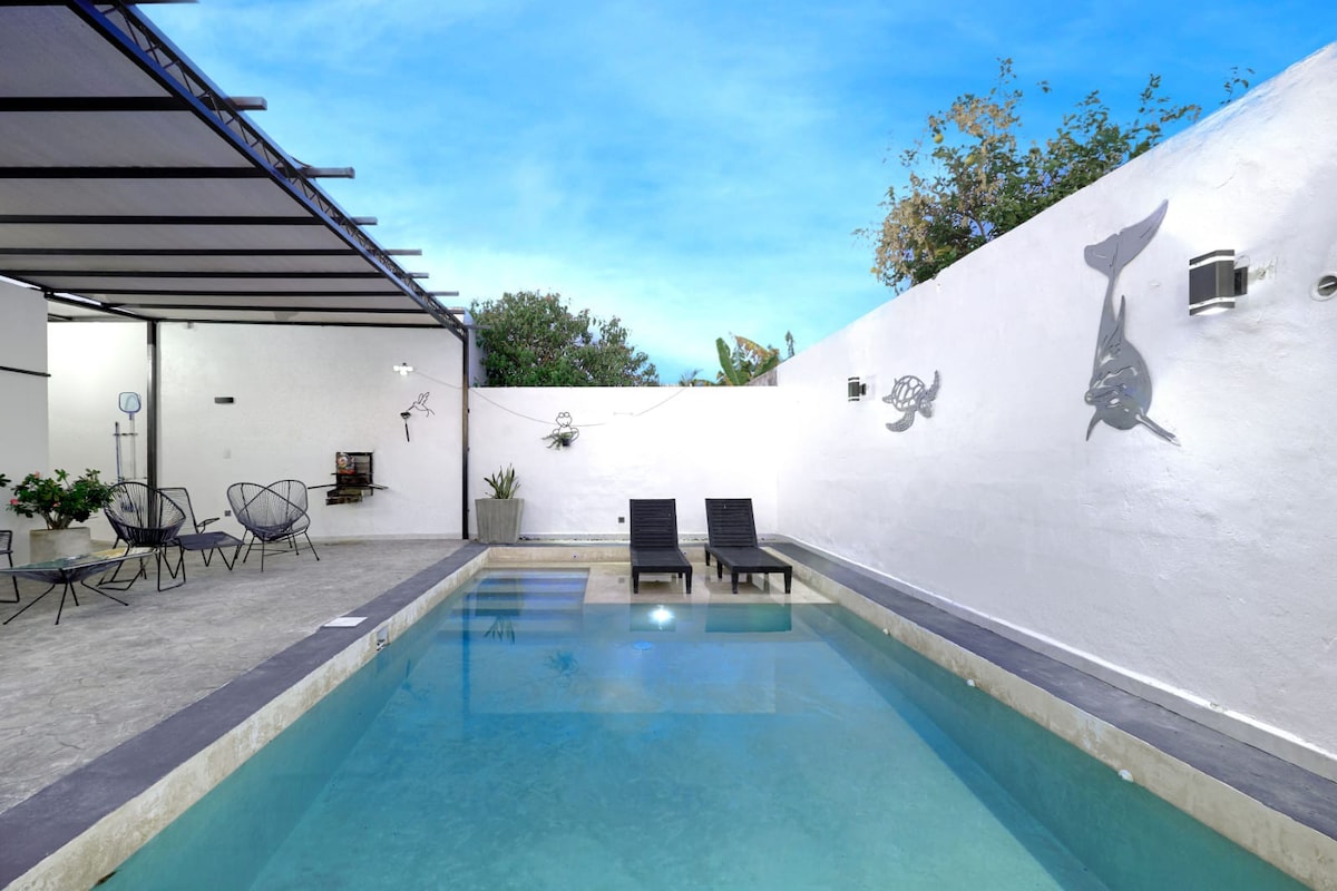 Déconnecte-toi de tes soucis dans cet espace spacieux et serein. À seulement 40 minutes de la plage et à 20 minutes du centre et du Paseo de Montejo, avec toutes les commodités et services. À proximité des places commerciales, des transports en commun, etc. L'espace est entièrement privé, calme et sûr, dispose de jardins et d'une piscine, prêt à arriver et à se sentir comme à la maison