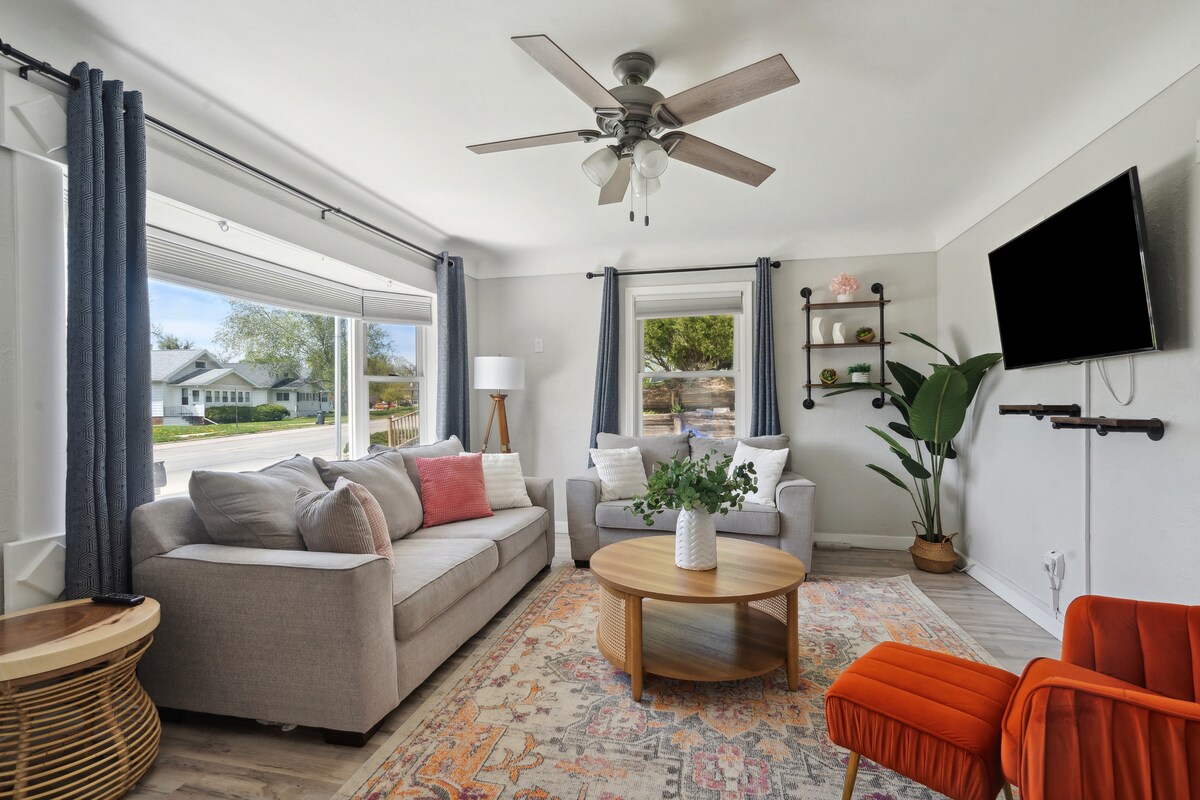 Ce chalet confortable est une escapade incroyable! Venez vous détendre, faire du vélo ou marcher jusqu'aux bars et restaurants ou simplement passer du temps en famille ou entre amis; ou restez en voyage d'affaires pour vivre une expérience incroyable et savoir ce que Cedar Rapids a à offrir. La cuisine ouverte magnifiquement construite et le salon font un lieu de rassemblement impressionnant. Il suffit de sortir pour assister à des activités, concerts, restaurants, etc. sans fin. Profitez d'un environnement paisible avec accès facile aux restaurants et au centre-ville dans le quartier de NewBo.