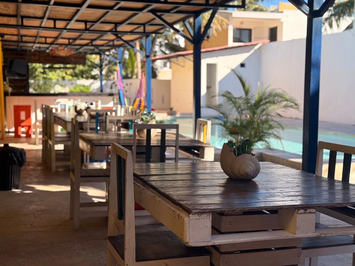 Casa Ufemia, votre refuge au cœur de Mérida, lit QS, salle de bain privée avec eau chaude, climatisation, Wifi, ventilateur et minibar. Détendez-vous sur notre terrasse avec piscine extérieure, parfaite pour profiter du climat de Mérida. Nous sommes à 8 pâtés de maisons du Parc de la Plancha, à 12 pâtés de maisons de la cathédrale, à 15 minutes de l'ambassade des États-Unis, à 20 minutes de l'aéroport, à 5 minutes à pied du marché Chembech. Nous ne sommes pas PET friendly, mais nous avons trois adorables chiots formés.