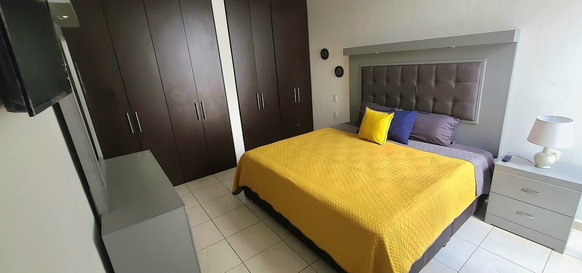Alojamiento se encuentra ubicado a 50m del parque lineal del boulevard García de León, recientemente remodelado, donde podrás disfrutar de una caminata o simplemente sentarte a disfrutar de las áreas verdes, cerca de restaurantes, centros comerciales y lugares de entretenimiento. Cuenta con una recamara con cama King Size, un baño, una sala con televisión y espacio de trabajo, comedor y una pequeña cocineta con enseres básicos. El sofá se puede habilitar como cama para niños y/o adolescentes.