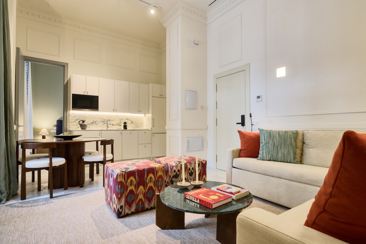 Villa Mora Sevilla est un immeuble de 6 appartements de charme. Cet appartement situé à un premier étage très élevé, d'environ 70 m2 construits, offre une vue magnifique sur la Plaza de Santa Isabel, a été soigneusement conçu, est exclusif et a été conceptualisé avec un style moderne, mais sans perdre l'essence d'antan, et équipé de tout le confort et le luxe des détails pour que les clients puissent se sentir comme à la maison mais dans un environnement unique et historique.