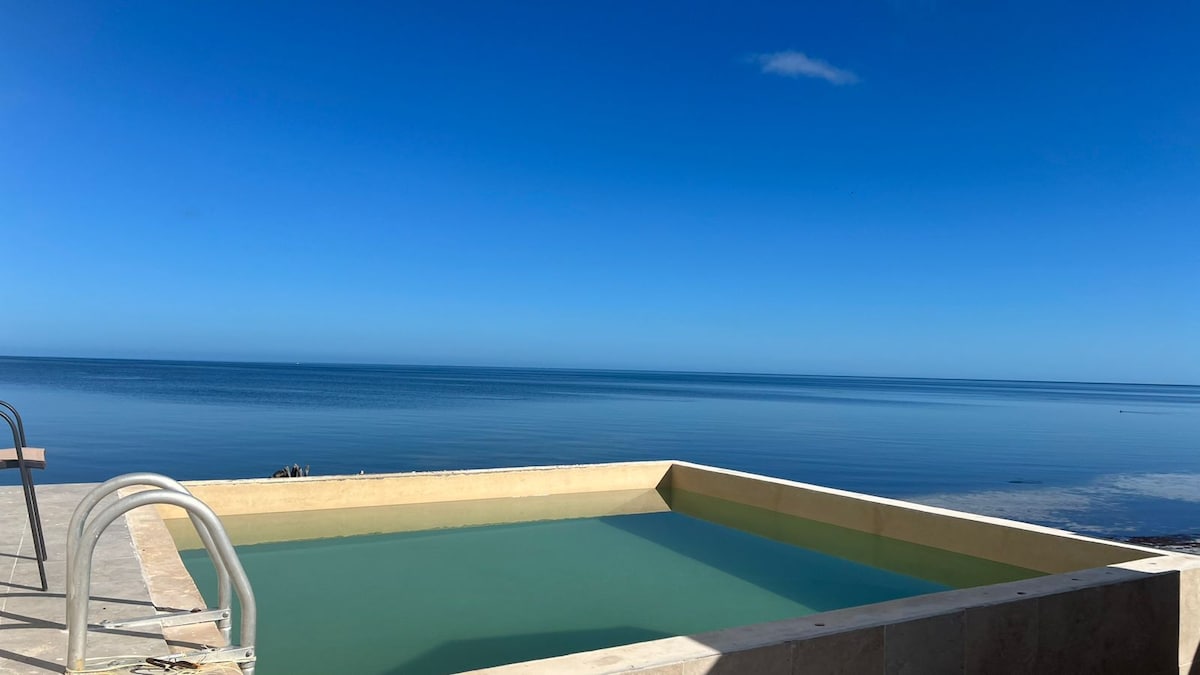 Bienvenue dans notre villa en bord de mer Casa Kyma à San Crisanto (à 50 min de Merida, Yucatan, Mexique). Vous aurez toute la villa de 3 chambres avec vue sur l'océan et des couchers de soleil inoubliables. Chaque espace est conçu avec soin dans un style pour votre séjour inoubliable. La villa peut accueillir 6 adultes, les enfants partageant un lit avec leurs parents sans frais supplémentaires. À l'intérieur de la villa, il y a une cuisine entièrement équipée, et à l'extérieur, il y a un espace barbecue pour des grillades en plein air.