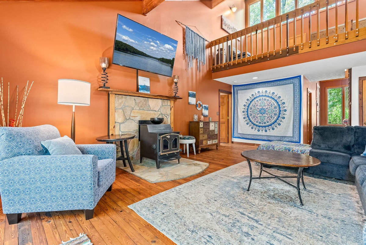 Bienvenue dans notre escapade sereine, parfaitement située dans une crique paisible à quelques pas des rives du lac West Point ! Le plan d'étage ouvert encourage les moments de qualité avec vos proches, tandis que les espaces extérieurs comme un foyer confortable et une vaste terrasse offrent le cadre idéal pour la détente. À l'intérieur, profitez d'une salle de jeux conçue pour le plaisir et le divertissement. Notre retraite spacieuse peut accueillir confortablement jusqu'à 10 personnes avec 4 chambres, 3 salles de bain complètes et 1 demi-salle de bain, ainsi qu'un lave-linge et un sèche-linge de grande taille.