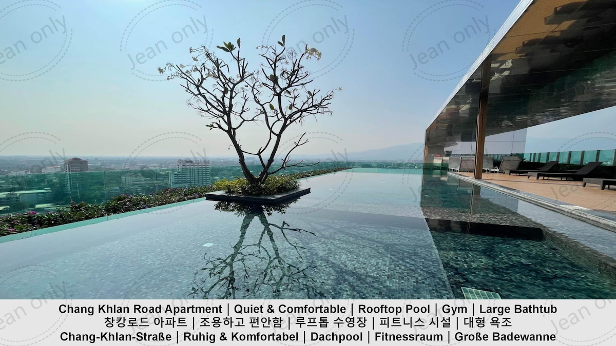 位于主城区的长康路(Chang Khlan Rd.),公寓对面 是Adcurve社区购物中心,有7-11、肯德基、屈臣氏、 B2S等。距长康夜市(Chang Klan Night Market)1 公里,距离古城1.4公里,距离宁曼路(Nimmanhaemin Rd.)5公里,距离清迈国际机场约5公里。 tha Stra sky river是清迈第一网红公寓,拥有全清迈唯一的150米长的屋顶游泳池,在屋顶泳池,您可以欣赏清迈的全景, 欣赏最美丽的素贴山(Doi Suthep Mountain)的日落。 房源介绍 √ 1间卧室套房,44平方米:1间客厅、1间双人床的独立卧室、1间全功能卫生间、1间餐厅和1间开放式厨房,适合1-3人入 住。 功能齐 全的独立卫生间,干湿分离。我们提供洗发 水、护发素、沐浴露和吹风机。 面向北方的私人阳台,配备2把椅子和桌子。 高速无线网络。 通过无线网络连接智能电视和优质音箱 配备烘干功能 的自动滚筒式洗衣机,可将衣服挂在 阳台上。
